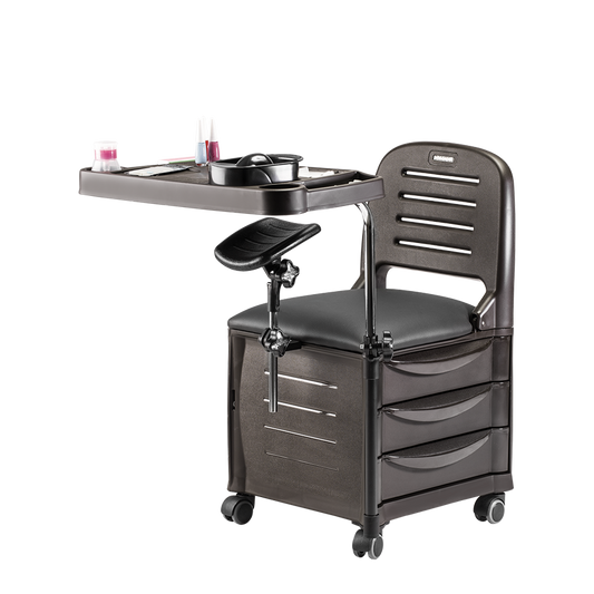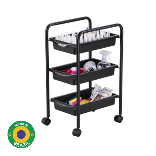 Dompel Manicure Smart Trolley Model 5046-1 – Professional Salon Organizer with 3 Removable Trays, Steel Structure, and Mobile Nylon Casters, Black
