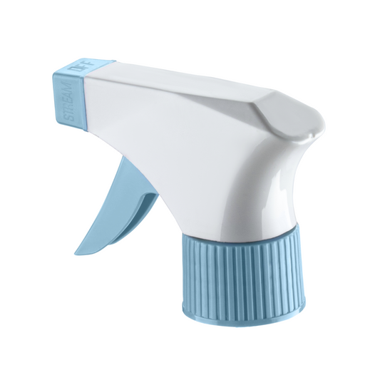 Dompel Trigger Sprayers valves, color blue, thread 28/410, made with stainless steel springs and glass balls, with spray and stream Model 101D