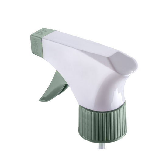 Dompel Trigger Sprayers valves, color green, thread 28/410, made with stainless steel springs and glass balls, with spray and stream Model 101D