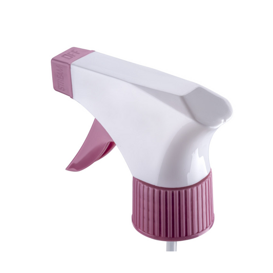 Dompel Trigger Sprayers valves, color guava, thread 28/410, made with stainless steel springs and glass balls, with spray and stream Model 101D