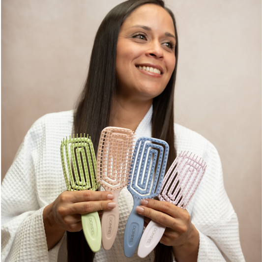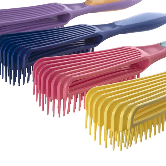 Dompel Caracol Curl Brush Set - 4 Piece Set (Yellow, Pink, Purple, Blue) - Antistatic Brush with Soft, Flexible Bristles, Specifically Designed for the Curl Brushing Routine.