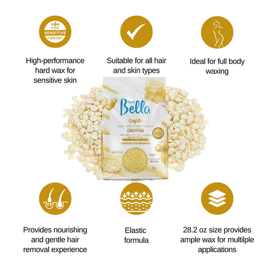 • Depil Bella White Chocolate Hard Wax Beads – Best Hard Wax for Sensitive Skin & Full-Body Waxing