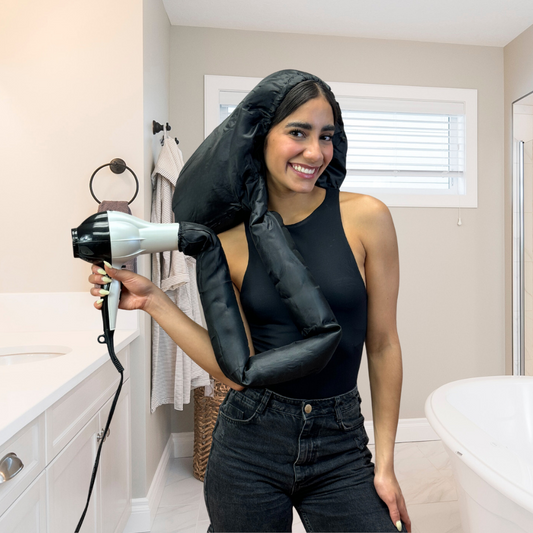 • Dompel Black Satin Diffuser Cap | Enhance Hair Drying, Reduce Frizz, Protect Hair Elastic Band and Rubber Element for a Secure Fit (SIZE L)